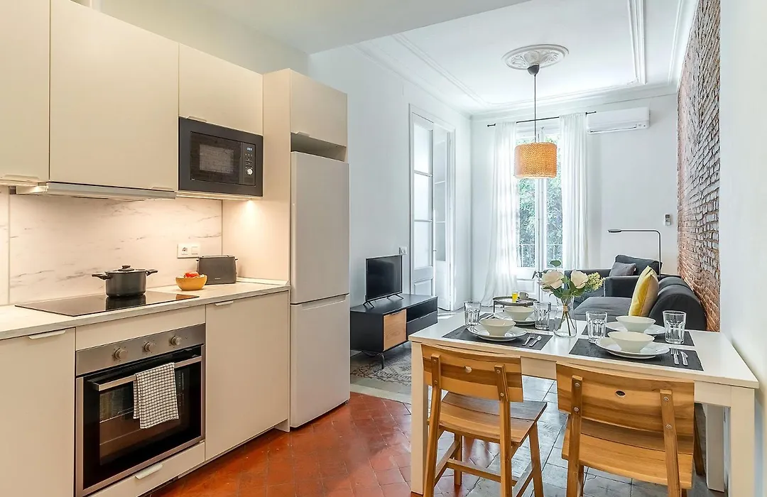 Disfruta de la comodidad de una cocina completa en el apartamento 4305 - Ab Centric Universitat Ii.I, permitiendo a los huéspedes preparar sus propias comidas caseras. Se encuentra a unos cuantos pasos de la parada de autobús más cercana: Tamarit - Mercat de Sant Antoni.